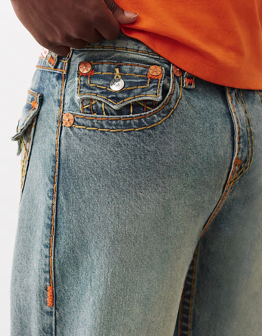 The Vinny Super T Ultra Baggy Jean 34” turns up the volume. Loose throughout the leg, these jeans feature whiskering, Super T stitching, clean hardware and stitched horseshoes on the back flap pockets.