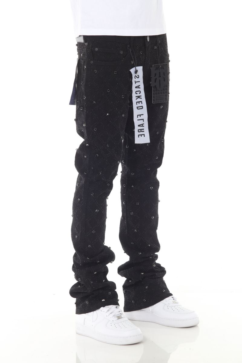 Premium Rhinestone Stacked Flare (BLACK)