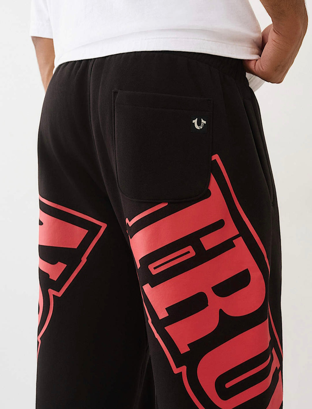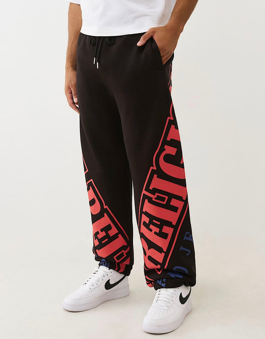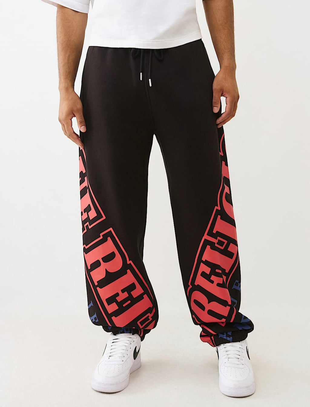 TRUE RELIGION OVERT ARCH LOGO BAGGY JOGGER (JET BLACK/RED)